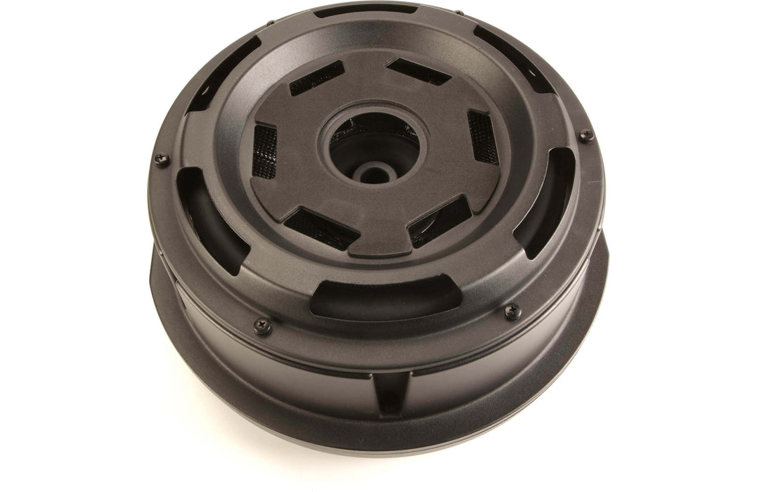 The JBL Stadium BassHub subwoofer delivers show & shine performance without crowding your passengers or sacrificing cargo area when paired with an amplifier. This subwoofer enclosure fits into the hub of your spare tire for a super easy installation and out of sight sound solution. The 11" (279mm) feather-light fiberglass woofer cone with rubber surround delivers the signature kick and punch of JBL bass. The subwoofer enclosure is designed with excellent density and strength die-cast aluminum material for more stable low end extension performance. Whether you're cruising or competing, the JBL Stadium BassHub leaves the competition behind without missing a beat.