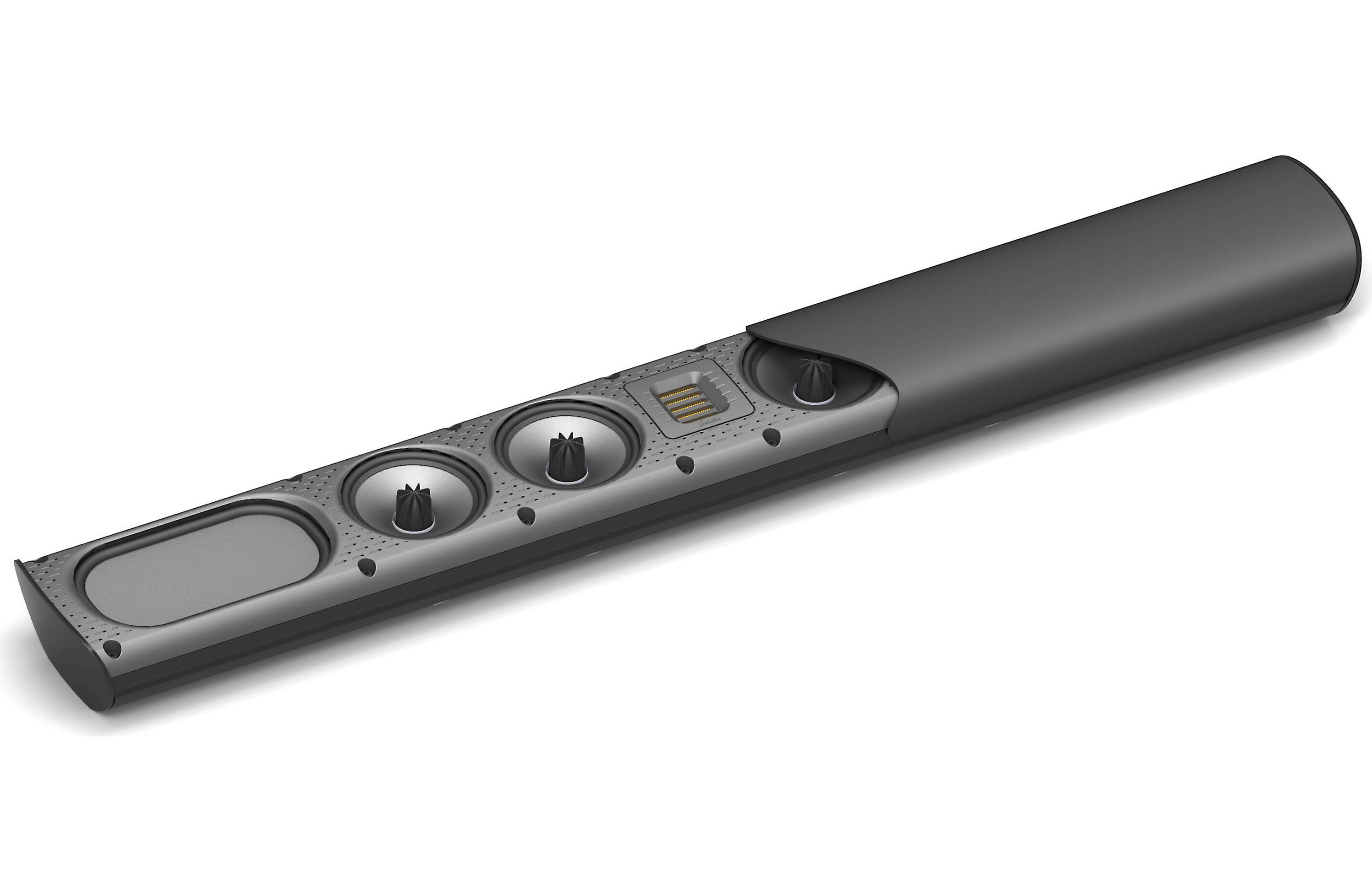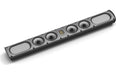 The sleek, attractively sculpted cabinet follows the same design philosophy that won the SuperSat 50 the highly respected Resi Award as the industry’s best looking on-wall loudspeaker. It is constructed from aerospace-grade aluminum and finished in gorgeous piano-gloss black. It contains four GoldenEar engineered 4.5" cast spiderleg-basket bass/midrange drivers with Multi-Vaned Phase-Plugs (MVPP) configured in a two-stage D’Appolito Array surrounding our signature High-Velocity Folded Ribbon high-frequency radiator. Two 4" x 7" quadratic planar low frequency radiators complete the driver complement, perfectly loading the bass/midrange drivers for open, boxless midrange and extended low-frequency response.