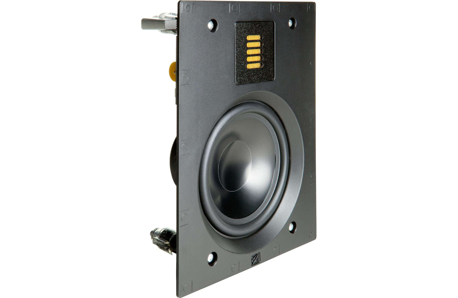 The EM-IW features our exotic Folded Motion tweeter and a 6.5-inch aluminum cone woofer with cast aluminum basket that provides powerful low-frequency bass extension. This stealthy inwall speaker blends seamlessly into any home thanks to it's ultra-low profile, micro perforated grille with no visible bezel.