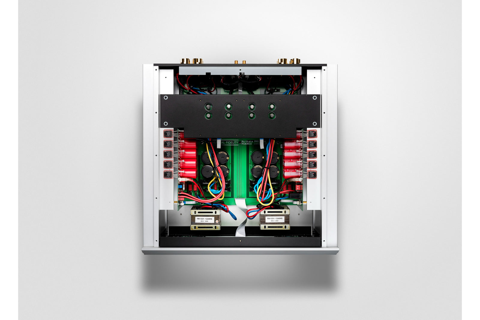 The separate Nu-Vista PAS PSU houses all the transformers, which by nature generate mechanical vibrations and radiate harmful electromagnetic fields. Here they are as far away as possible from the critical amplifier circuits. This significantly contributes to great signal to noise ratio. We basically get immunity against the effects of vibration from the environment. The same can be said about electro magnetic immunity. The massive aluminum case acts as a Faraday cage. It protects the internals against outer electromagnetic fields, and in the same way, the rest of your hi-fi gear against electromagnetic fields generated by the Nu-Vista PAS.