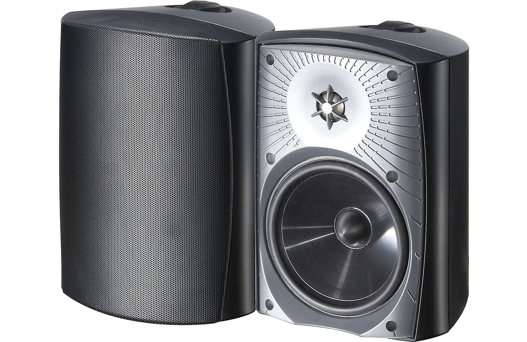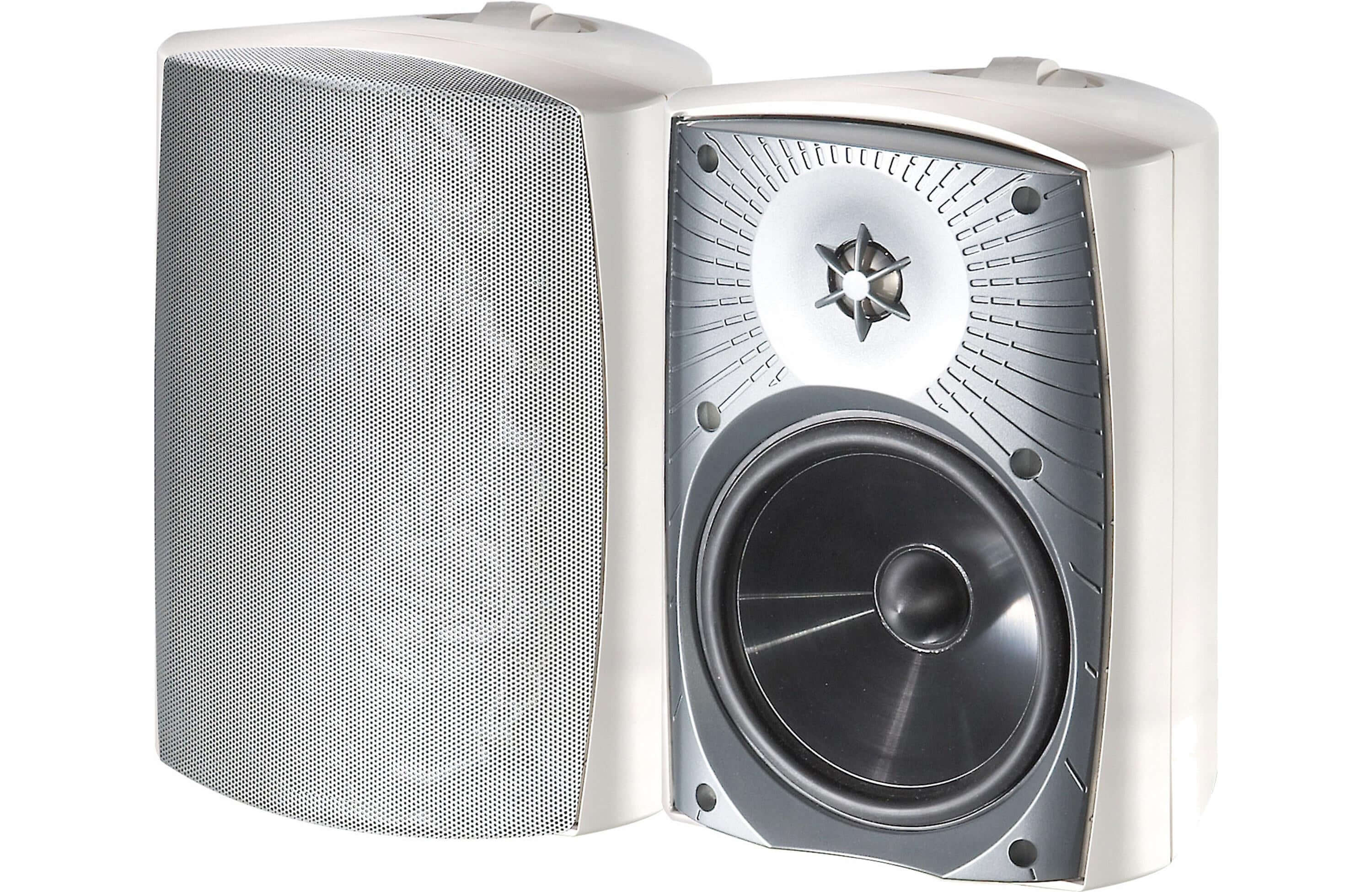 6-1/2"" mineral-filled polypropylene bass driver & 1"" titanium dome tweeter ensure great performance, while fully sealed, mineral-filled reinforced enclosures provide protection from harsh weather elements. All models have water & UV-resistant aluminum grilles, stainless steel & polymer mounting brackets, brass hardware, and gold-plated binding posts for superior toughness.