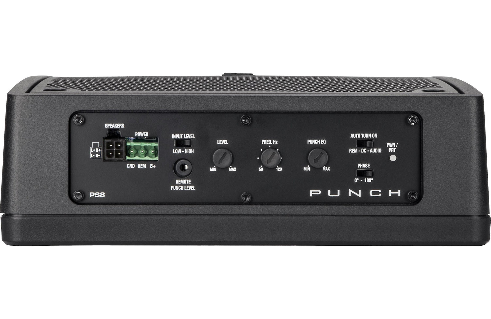If you need to quickly add bass to a system but don't have much space or height to make it happen Then the PS-8 is a perfect candidate! The PS-8 features a Punch 8 subwoofer in a custom sealed enclosure and is powered by a mighty 150 Watt amplifier. The system is all-inclusive, so you only need to run power, ground and a signal from the source to get this baby moving. Features a durable exterior that resists scrapes and bumps while in the trunk or cargo area.