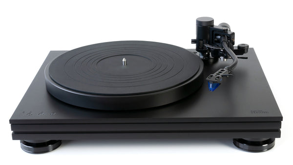 Stealth is a 3-speed direct drive turntable that comes complete with an s-shaped tonearm, a detachable headshell, and a factory-mounted, precision aligned Ortofon 2M Blue cartridge.