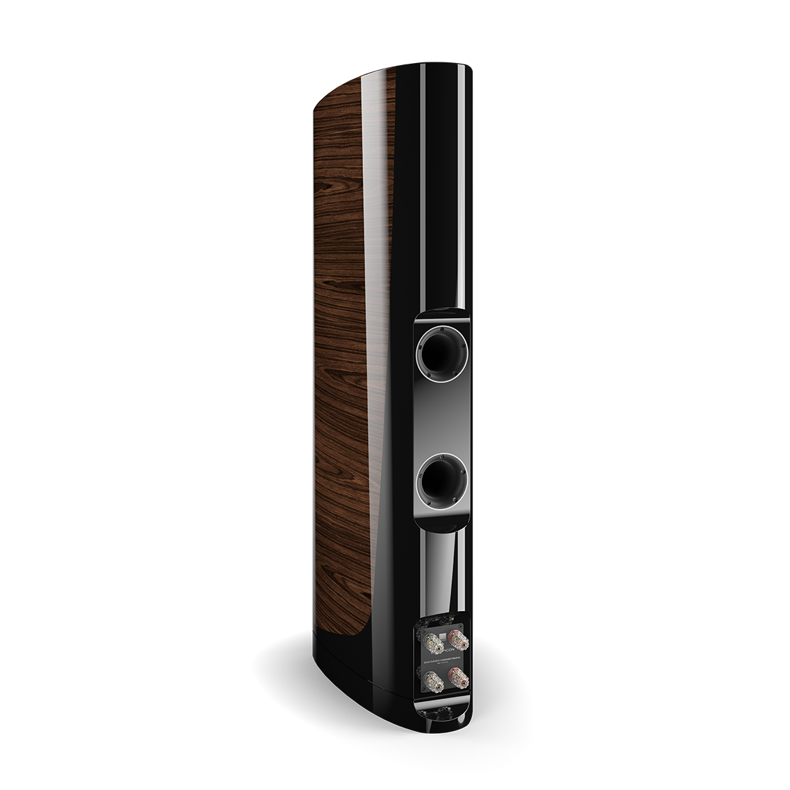 The EPICON 8 is a masterclass in elegant loudspeaker design, with curved lines and a real-wood veneer finished with 10 layers of lacquer, each hand polished to a deep gloss. But the cabinet is also functional. With no parallel surfaces, unwanted reflections are practically eliminated, while the rigid construction provides a solid platform and an acoustically tuned 'spring' for the drivers, which helps to eliminate resonant energy. Separate chambers inside the cabinet also allow each woofer to be individually tuned to perfection, and bass ports located directly behind the bass and midrange drivers minimize turbulence and deliver exceptional timing.