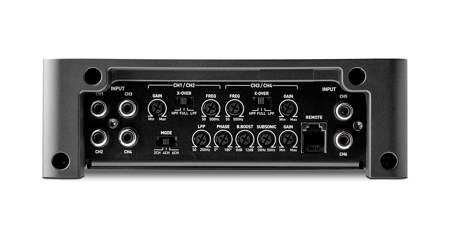 The input selector (2/4/6 channels) duplicates channels, meaning there will always be 5 output channels, even if the head unit only has one or two stereo outputs.