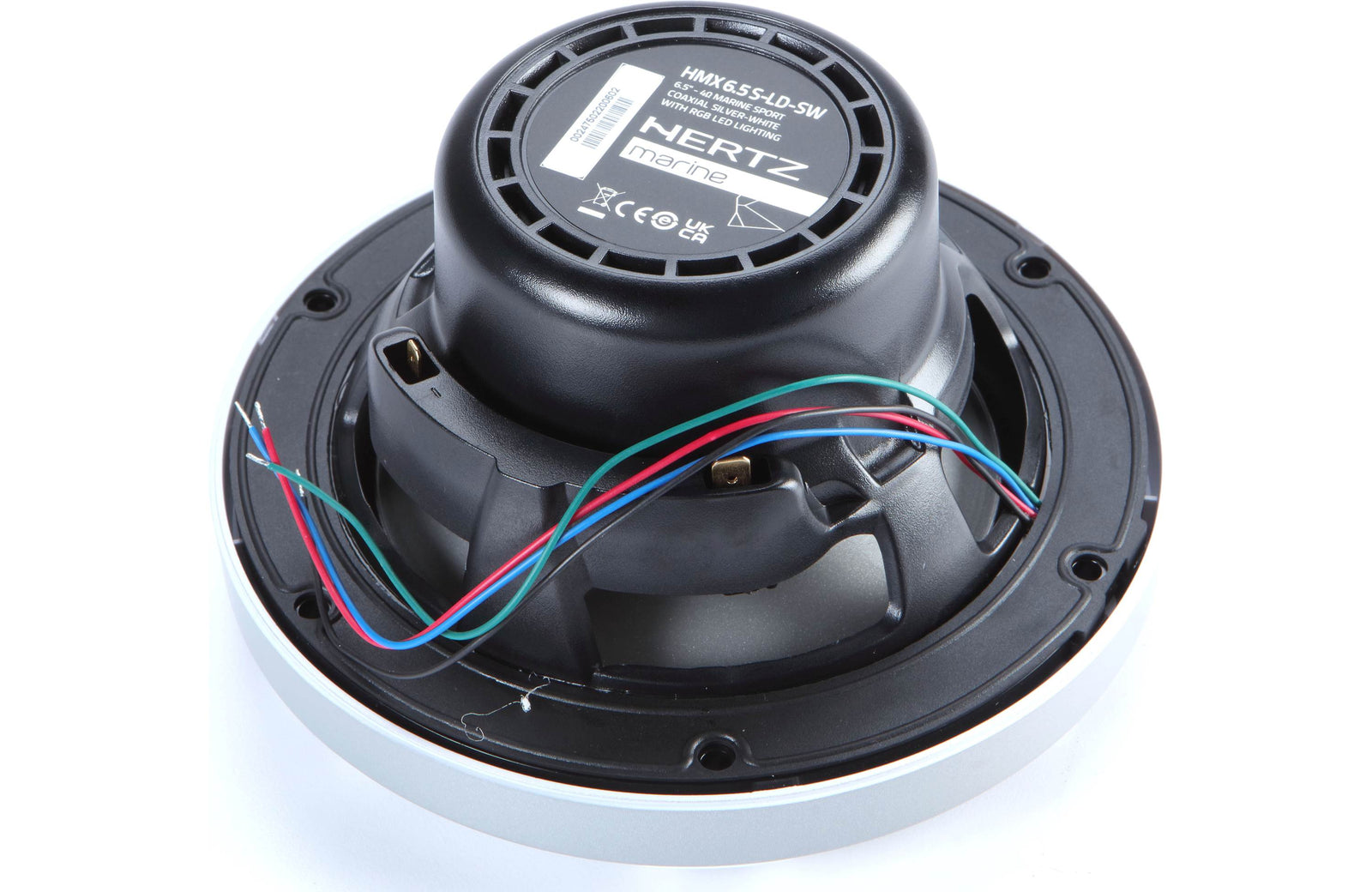 HMX 6.5  S-LD-SW marine coaxial speaker features a white sports grille for a perfect match with sporty boats. The coaxial speaker is engineered to operate in open water, pleasing you with the incomparable emotions of music for years on end thanks to the special ASA plastic grilles and polypropylene cone with co-molded Santoprene surround. The Aramid fiber spider with silicone-insulated lead wire ensures durability and constant performance over time. Parts and assembly methods are designed to meet high-humidity marine environments, ensuring the best audio performance season after season.