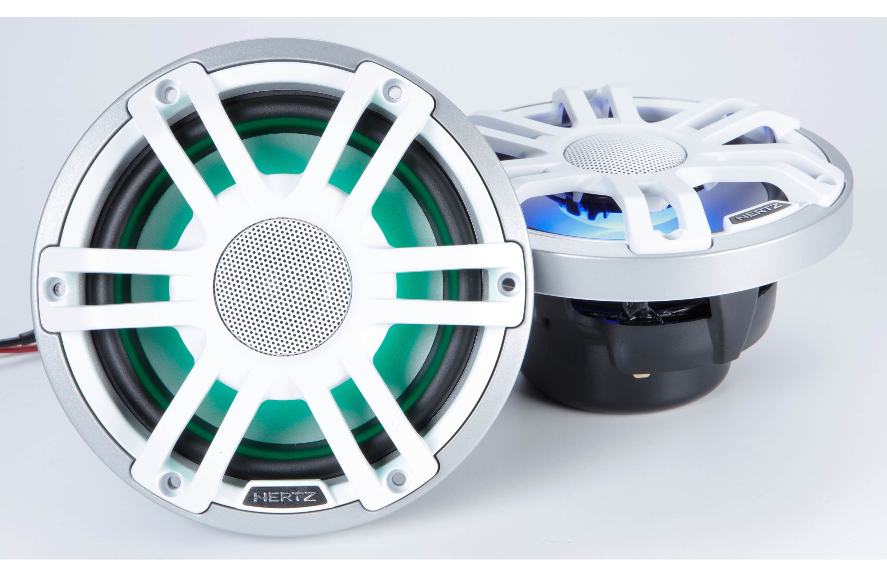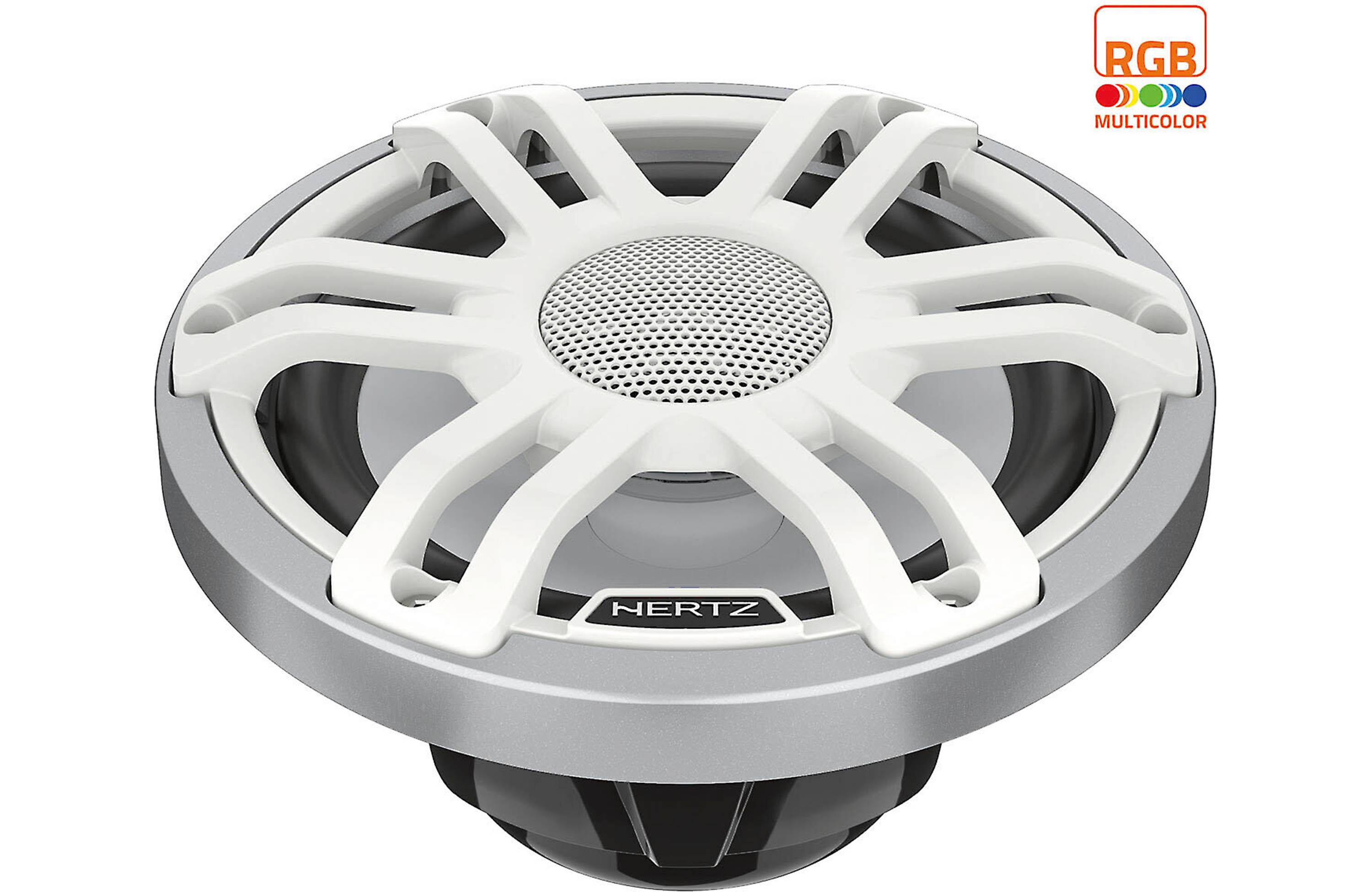 Hertz HMX 6.5 S-LD-SW 6.5" Marine Coaxial Speaker with RGB LED Lights with Silver-White Sport Grill (Pair)