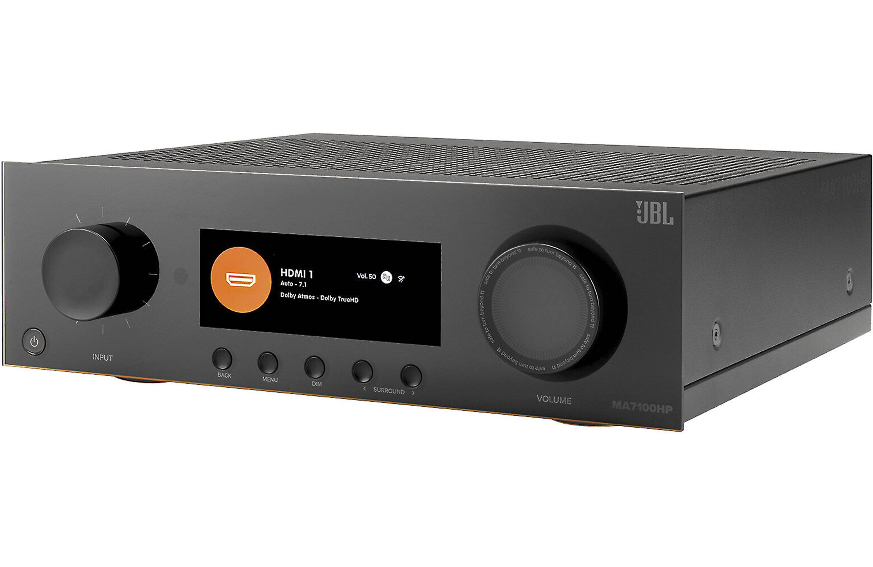 The JBL MA7100HP is a high-performance AV Receiver that delivers stunning realism with the latest 8K HDMI specifications and native 7-channel decoding of immersive audio from Dolby Atmos and DTS:X for the ultimate home cinema experience. Seamlessly integrate your smart TV or projector with 6 HDMI inputs and 2 outputs, plus eARC. Designed with a passion for music and movies, the MA7100HP brings both to life with true high fidelity. The MA7100HP features seven channels of low-noise Class D amplification for real world power to all channels. In addition to the onboard Moving Magnet phono input for connecting a turntable, additional music content can be accessed immediately with integrated streaming using Apple Airplay2, Google Chromecast, and Bluetooth AptX Adaptive. Taking performance to the next level, the MA7100HP comes “Dirac Live Ready” for automatic room correction, assuring audiophile-quality sonics and allows integrators and power-users to optimize the system to their personal room acoustics. Featuring a secondary HDMI video output and audio Zone, content can also be made available in a secondary location. In addition to physical controls, the MA7100HP allows for IP control for third party control system integration.