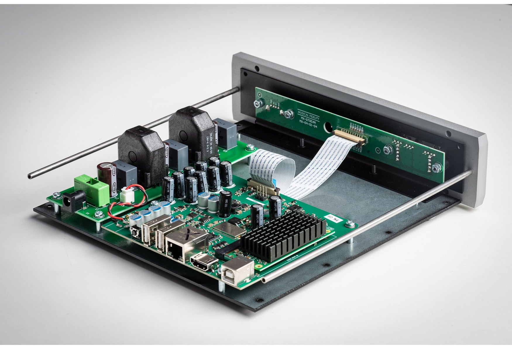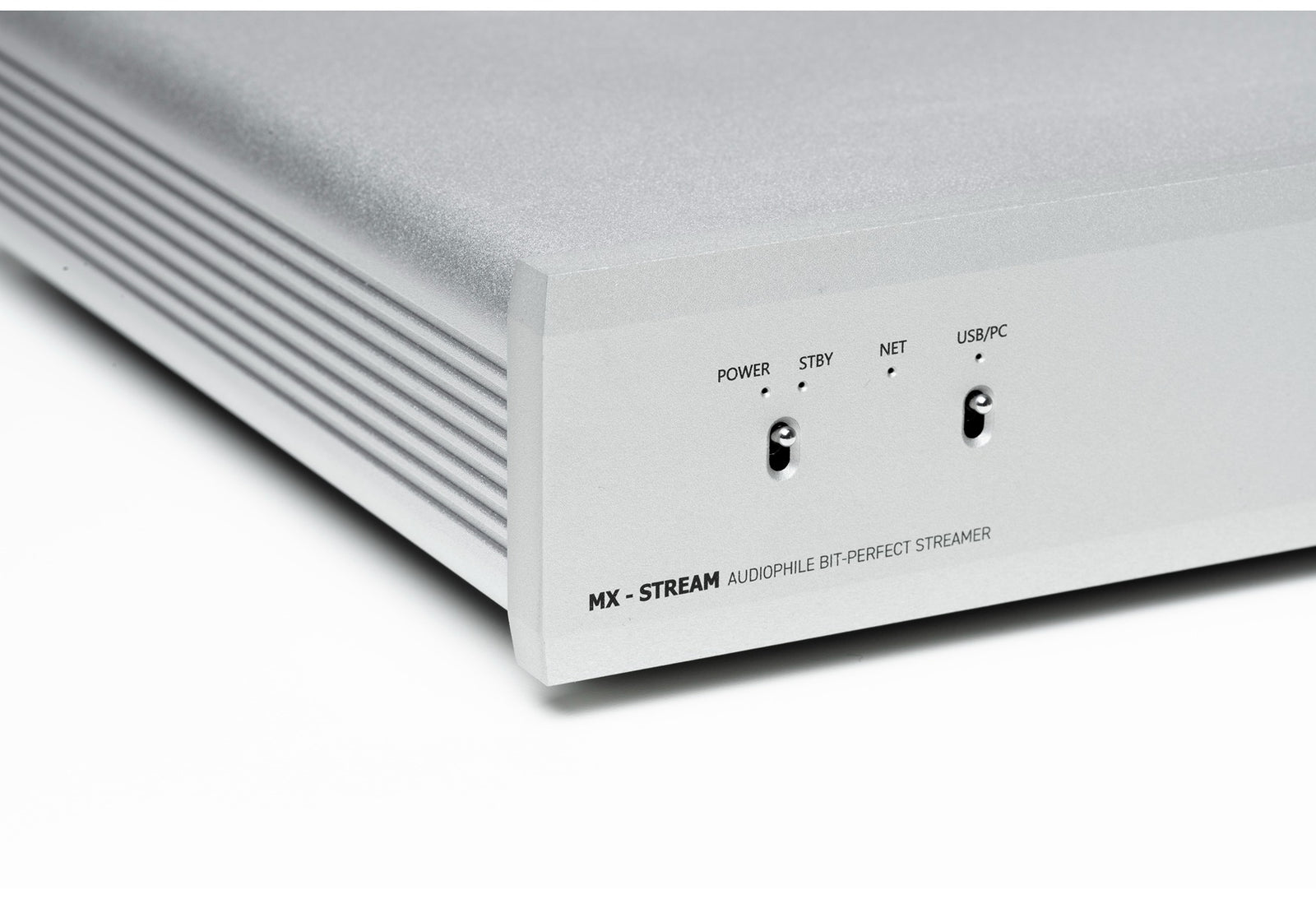 As a standalone device, the MX-Stream is the perfect add-on for any integrated amplifier or DAC with USB B input. Not only is the technology inside the MX-Stream complete cutting-edge high-end, every analog circuit in integrated analog amps displays increased performance, when digital circuits and power supplies are kept separate from the analog circuitry. By squeezing in a lot of digital circuits, additional high frequency distortion across the entire system can be observed. Coming from the other direction, huge power supplies for pre and power amps with lots of magnetic radiation impact digital circuit performance negatively. By keeping streaming and amplification separate we can achieve our true high-end sound vision to greater effect and at a more affordable cost, while also guaranteeing the longest lifetime of our amplifiers and streamers.