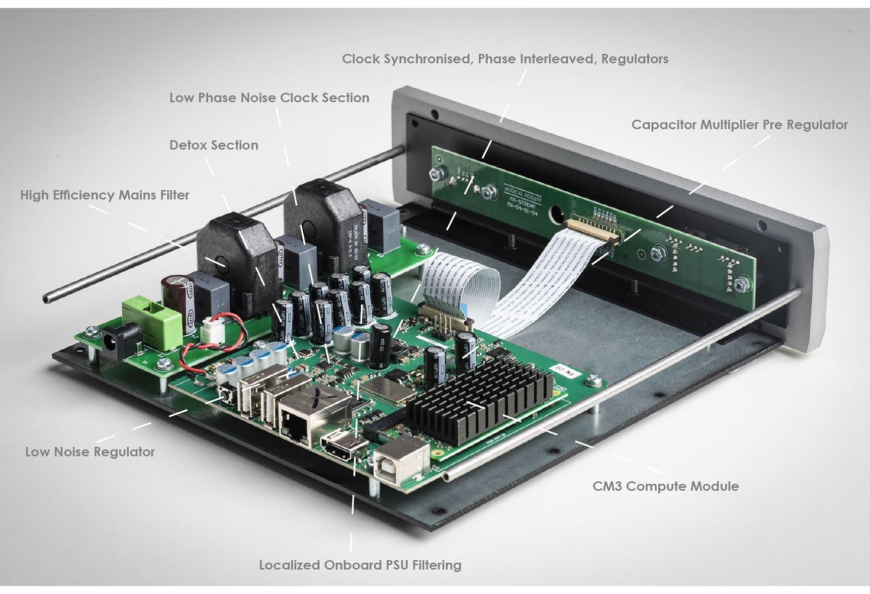 Our MX-Stream is a universal, transport-only network device that can take any online or network streaming service to your integrated amplifier or DAC. All you need is an existing USB Class 2.0 Audio input. The MX-Stream’s digital audio circuitry is a complete custom design from scratch. A huge part inside the chassis is dedicated to the extensive power supply section. We have PSUs and high-end voltage stabilization components for all the different PCB units. We have advanced re-clocking – even the main CPU is operated by an audio optimized clock, which is completely unheard in typical streaming solutions, as they typically run with standard CPU clocks like those in regular computers. Every incoming digital signal is cleaned up from the very beginning. All audio files that come in and out, are the best they can be by eliminating all unwanted noise that can be found in common streaming solutions. With an optimized software, we were able to push this high-tech hardware design to its absolute limits. All of this resulted in the first near-zero jitter streamer we have ever seen